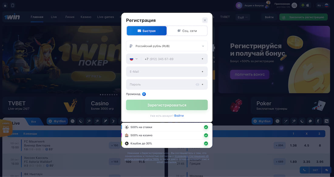 Также зарегистрироваться можно через мобильное приложение 1Вин. После его установки пользователи получают полный доступ ко всем возможностям платформы прямо со своего смартфона.