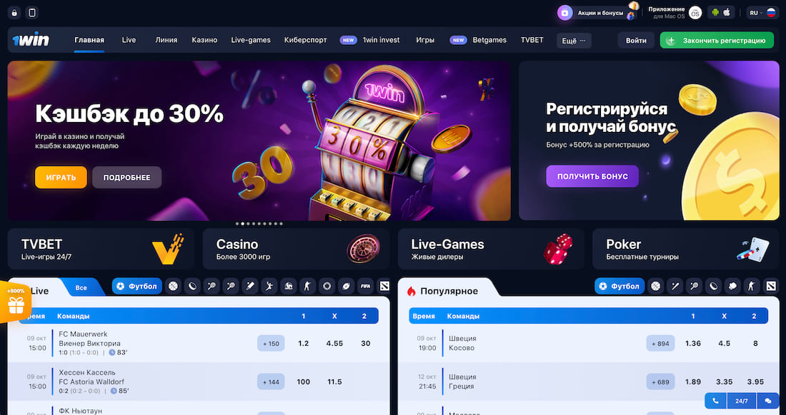 Официальный сайт сasino 1 Win— это современная и удобная платформа с интуитивным интерфейсом, продуманной навигацией и широкими возможностями для пользователей.