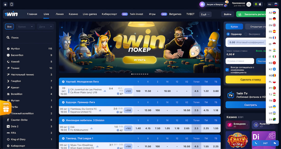 1 Win занимает лидирующие позиции среди букмекерских платформ благодаря высокому качеству услуг и универсальности. Зарегистрированные пользователи получают доступ к ставкам на спорт, включая прематчевые и лайв-события с привлекательными коэффициентами.